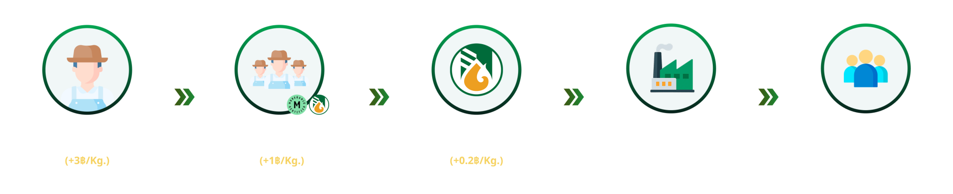 Once the farmer is approved for the Moreganic program, the farmer will receive an additional 3฿ per Kg as a premium, the collection point will also receive an additional 1฿ per Kg.