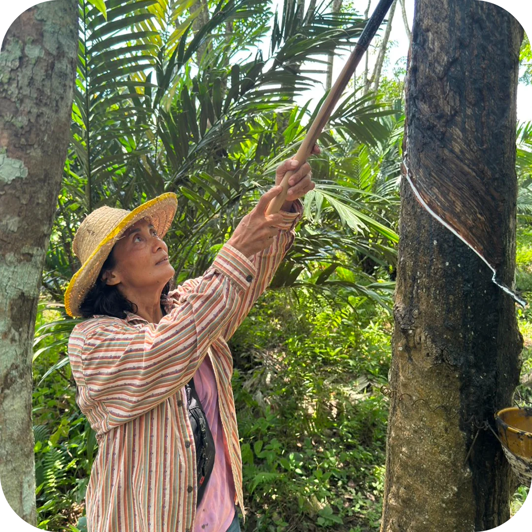 Working hand-in-hand with our agricultural partners, we build transparent, ethical supply chains that actively promote biodiversity and restore vital ecosystems. We are committed to a future where every drop of latex contributes to a healthier planet and guarantees fair, equitable compensation for every farmer.